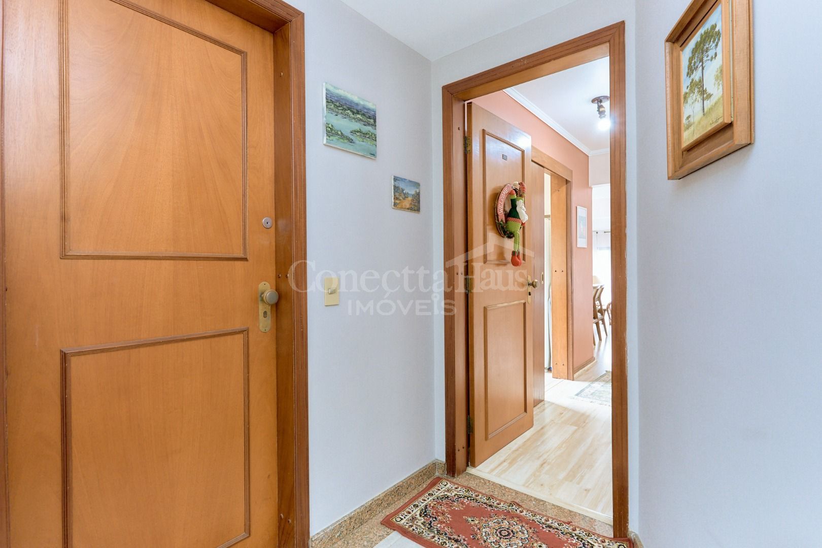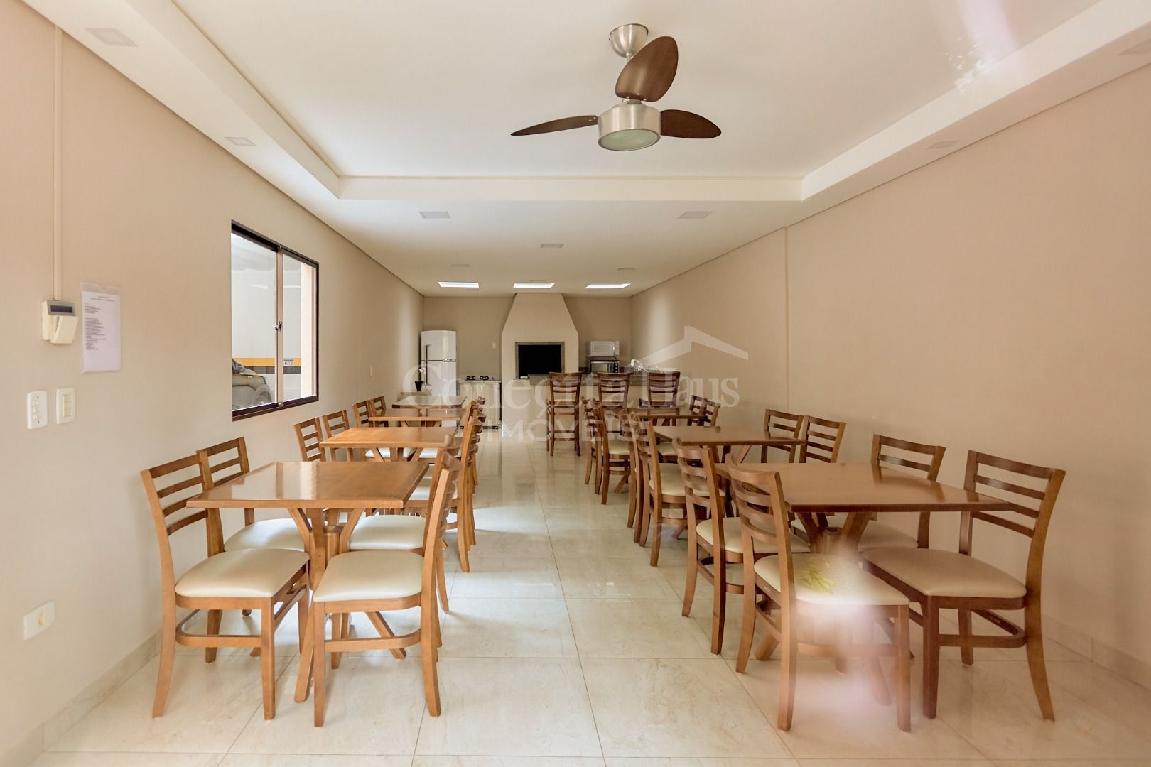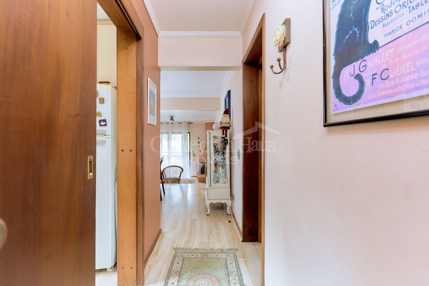 Ao adentrar, você é recebido por um corredor elegante que conduz aos ambientes principais. A cozinha integrada à sala garante dinamismo e facilidade no dia a dia, enquanto a sala de jantar em nível elevado separa os espaços com charme e sofisticação. A sala de estar com lareira oferece o cenário perfeito para momentos acolhedores e inesquecíveis em família.