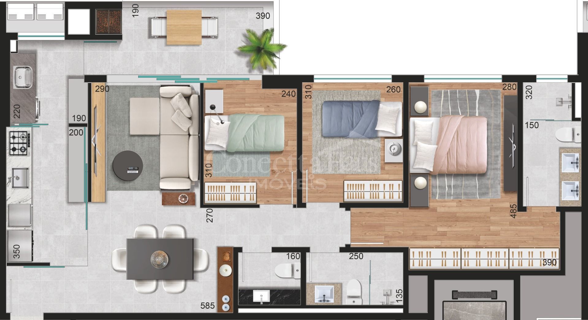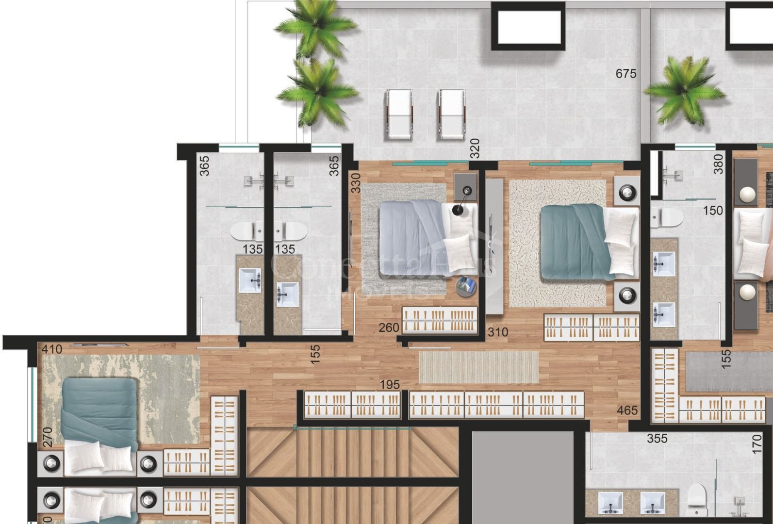 O empreendimento conta com cisternas de reuso e água potável, além de casa de bombas, garantindo uso consciente da água e mais qualidade de vida.