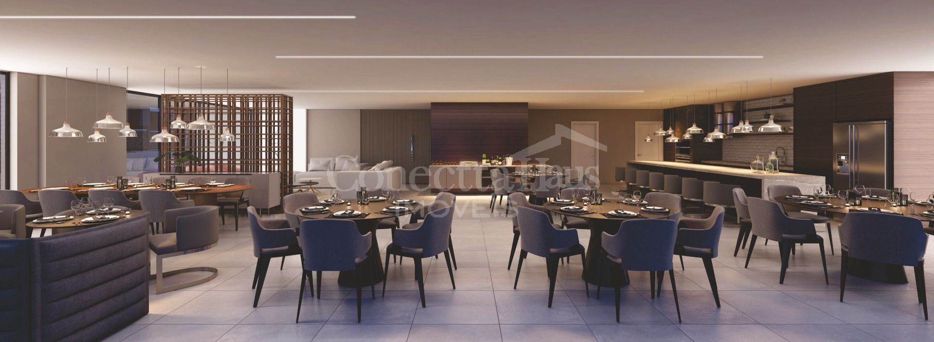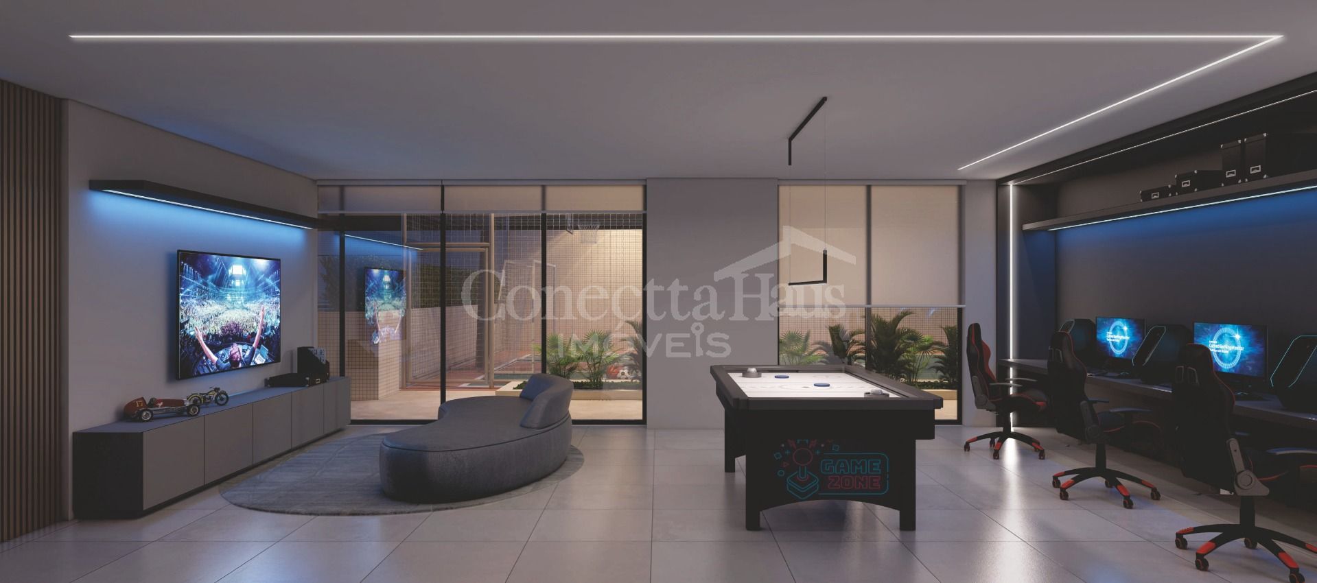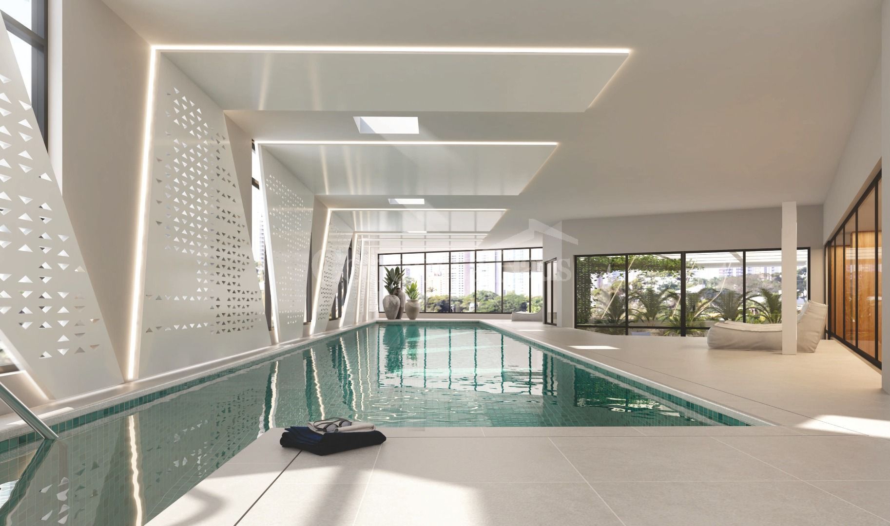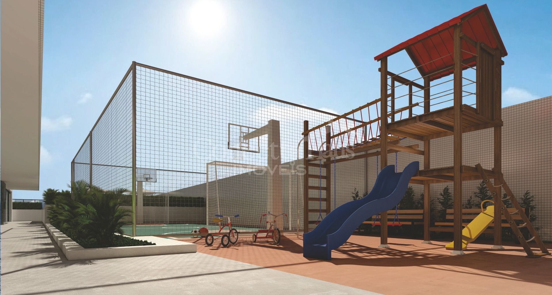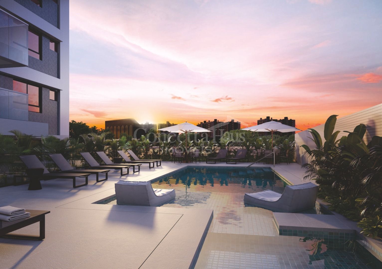 Salão de festas, espaço gourmet com churrasqueira, espaço fitness, brinquedoteca, salão de jogos, lounge, piscina coberta, playground, quadra poliesportiva e piscinas adulto e infantil ao ar livre.