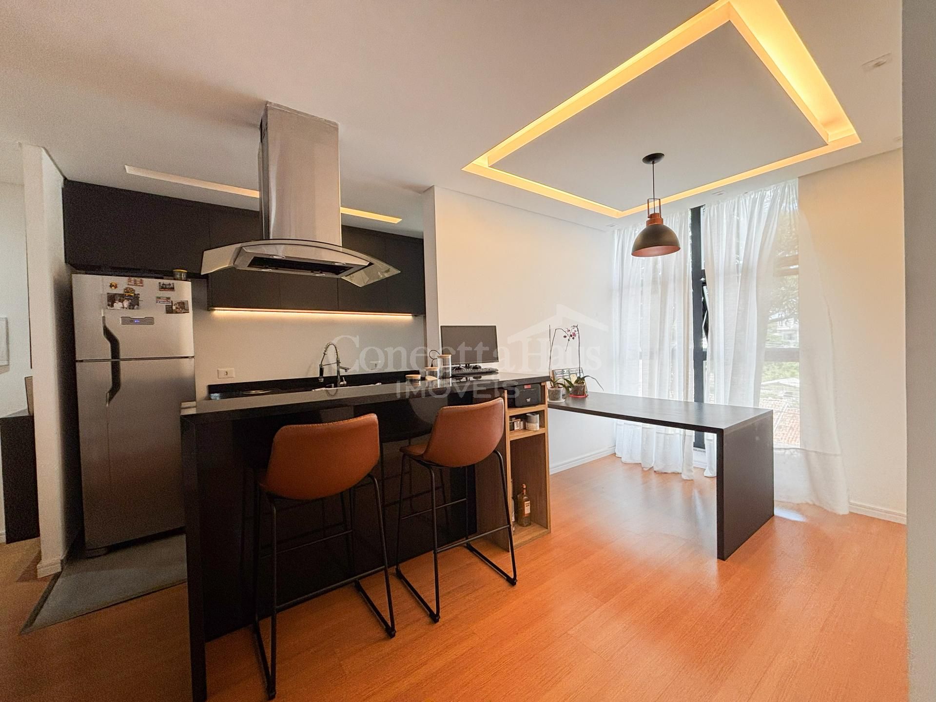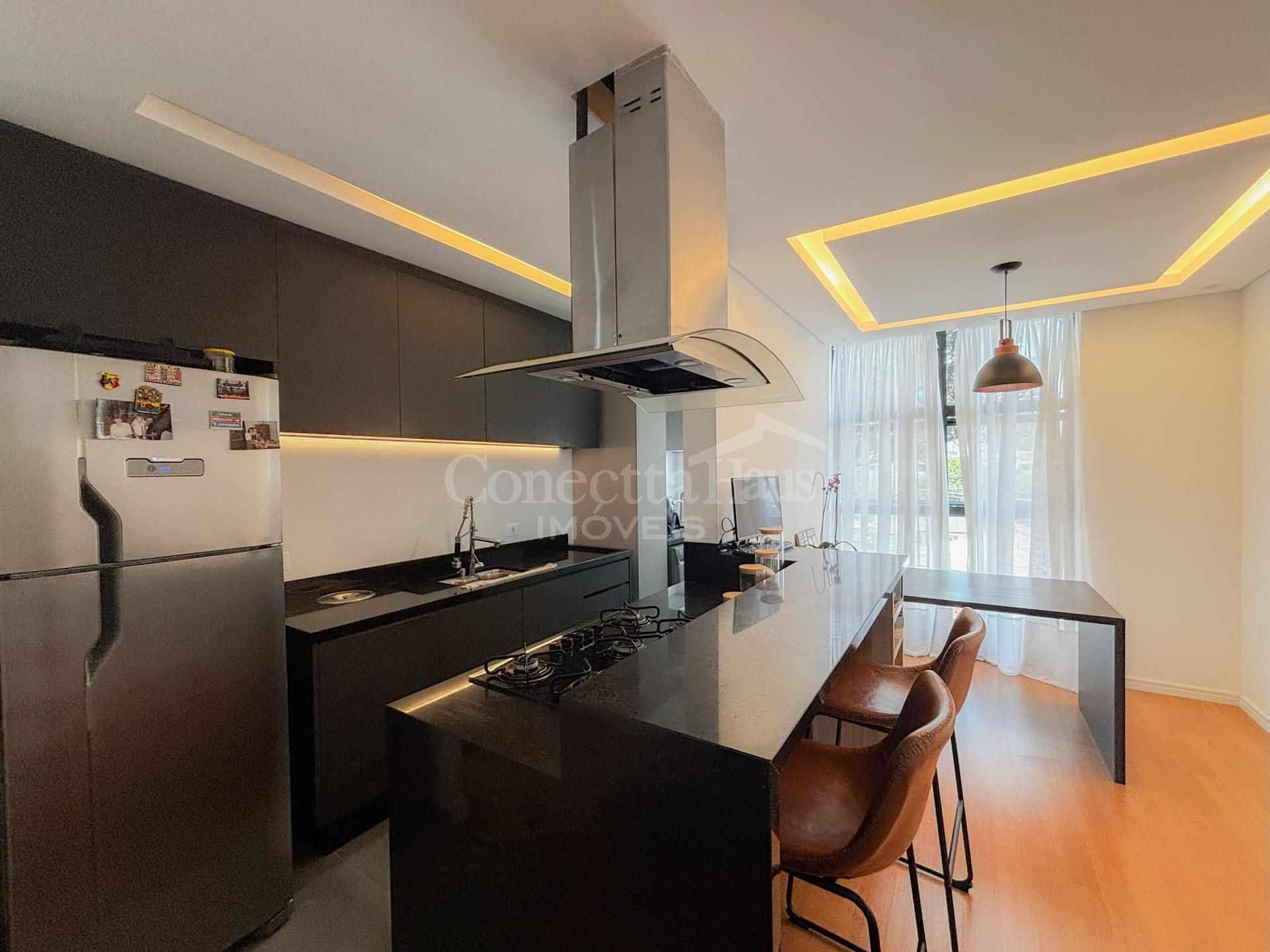 Cozinha e Sala de Jantar Ambiente integrado com cozinha e lavanderia planejadas. Destaque para a ilha americana com cooktop e coifa instalados, além de passa-pratos que conecta os ambientes de forma funcional e moderna. Iluminação com LED. Sala com vista livre para a rua, sem bloqueio de outros apartamentos.