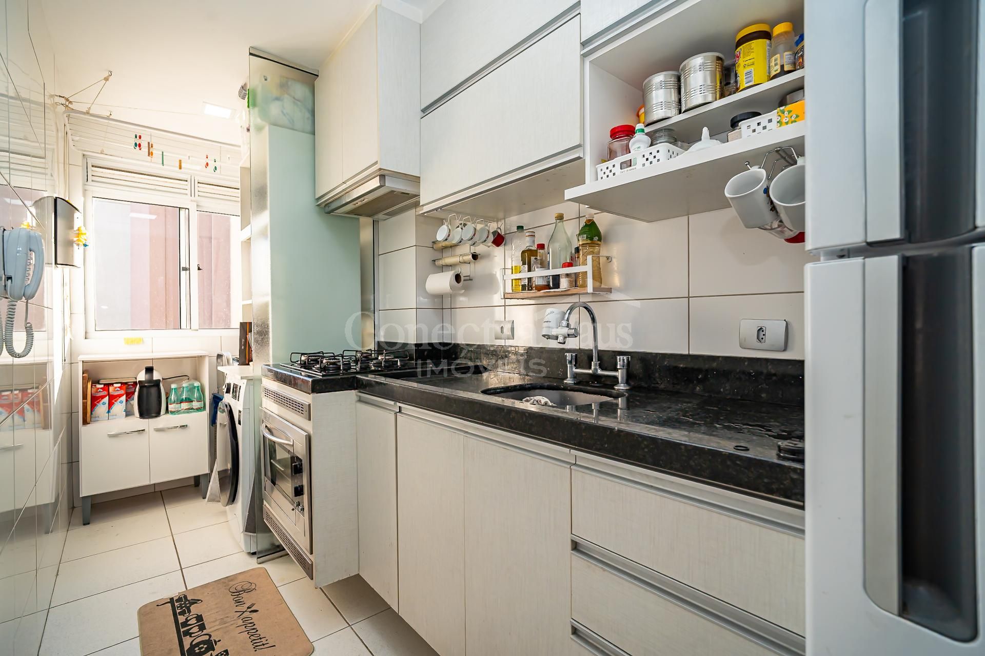 - Cozinha integrada à área de serviço, com layout funcional