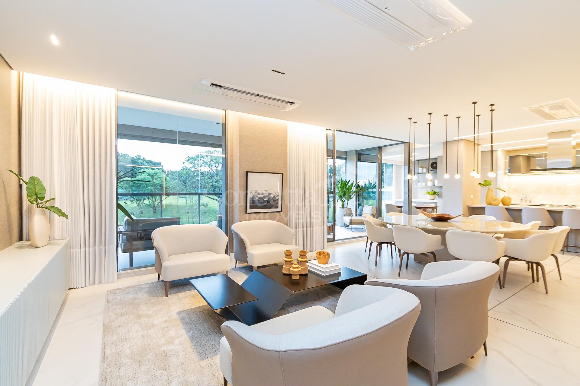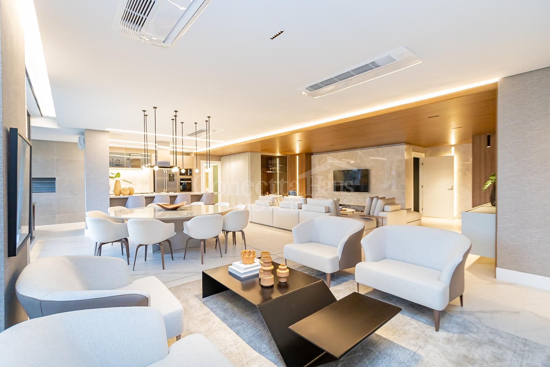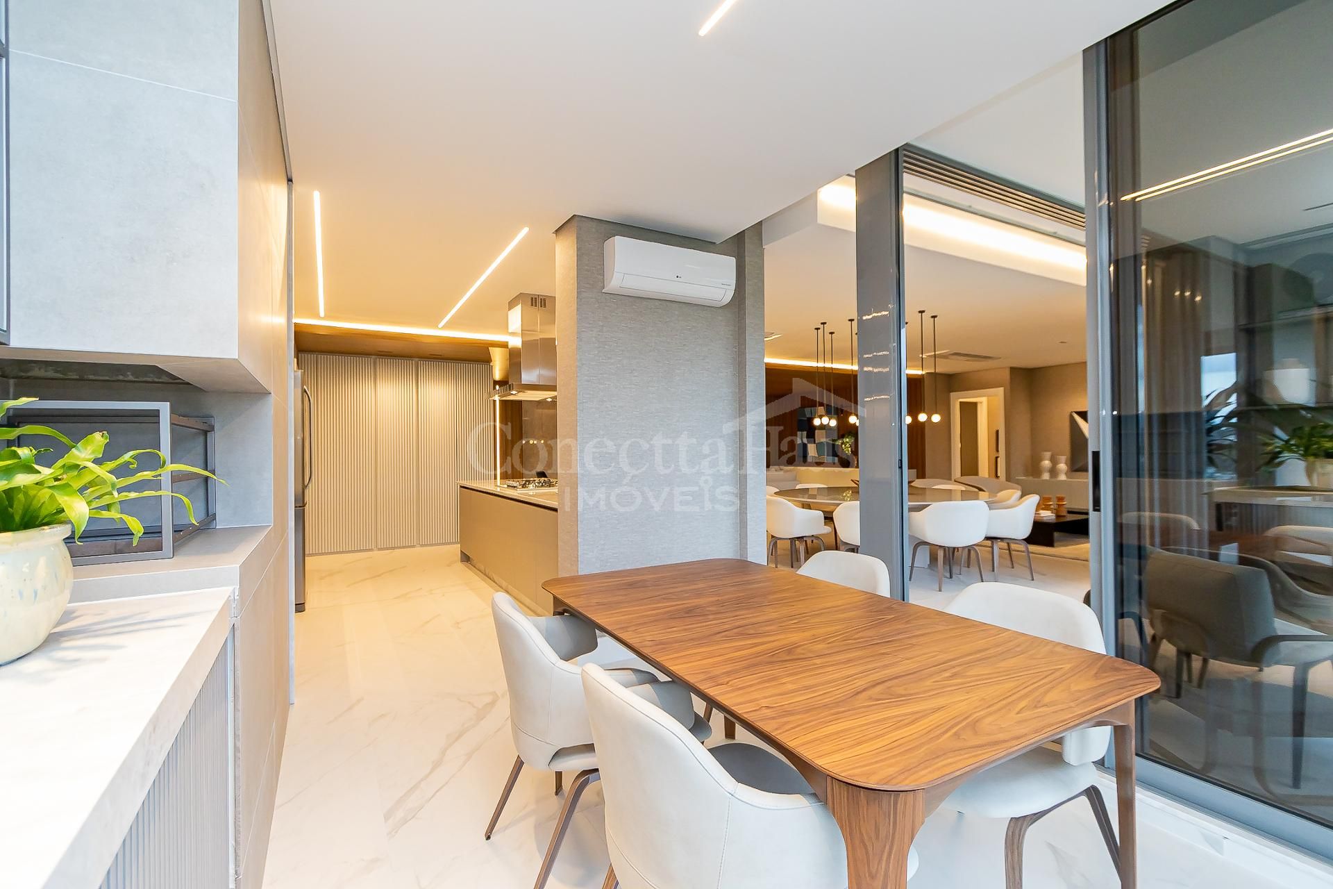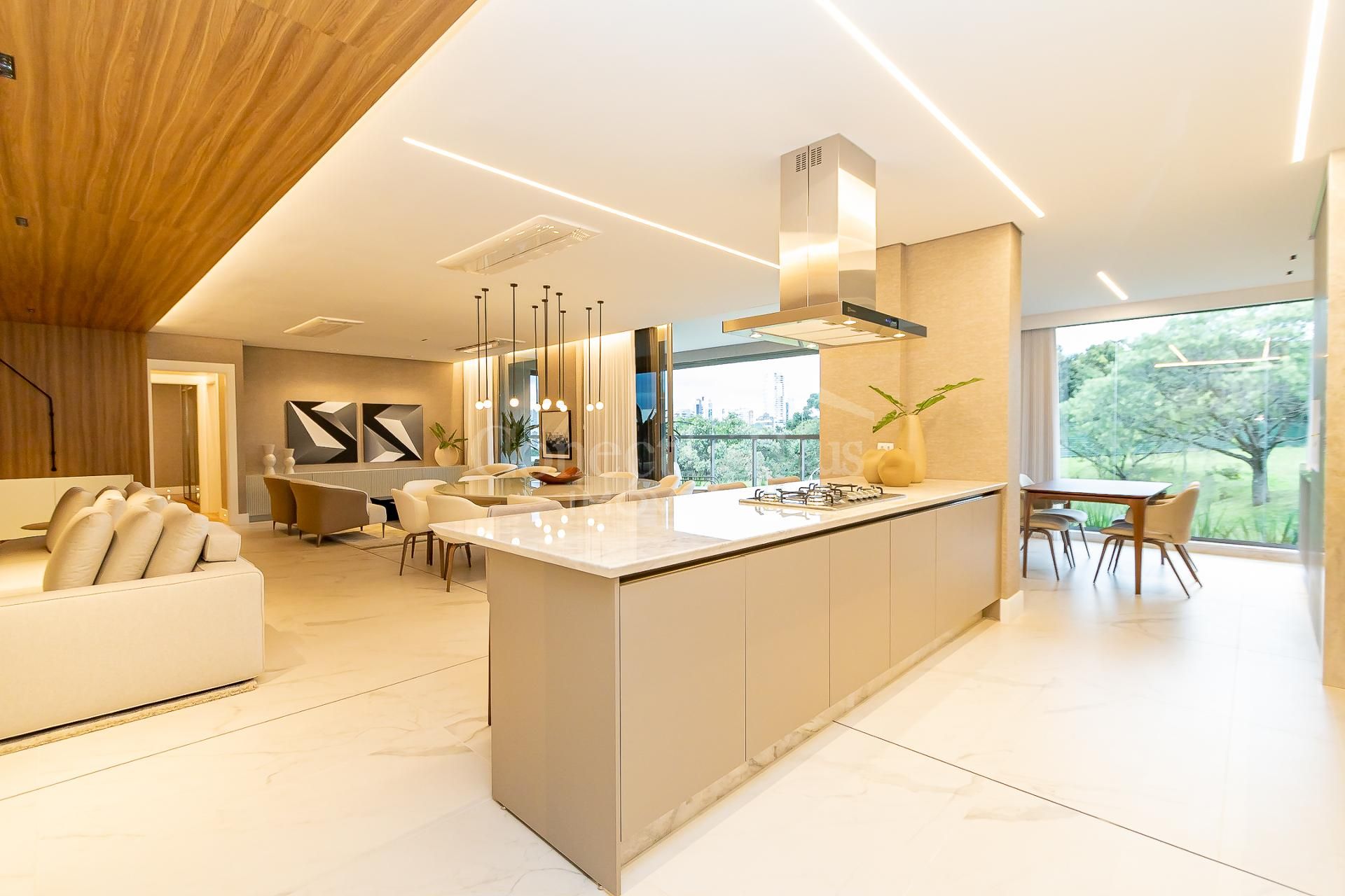 * Ambiente integrado entre cozinha, sala de jantar e sala de estar,