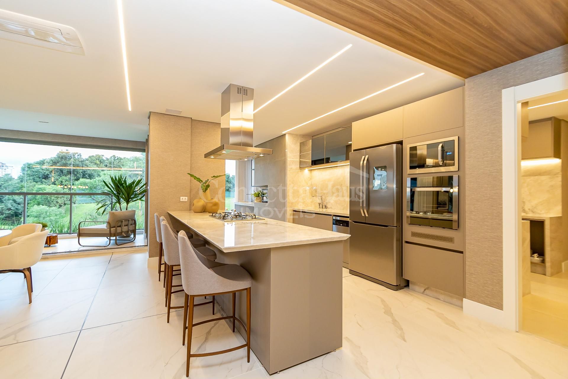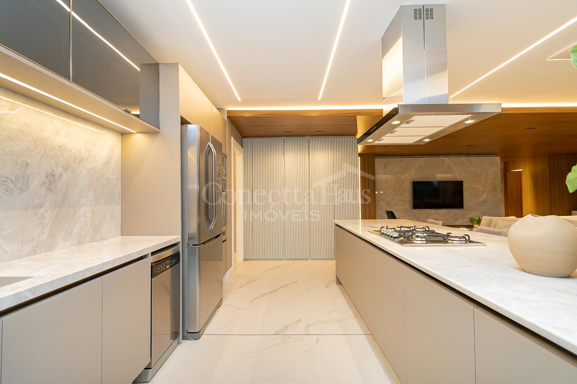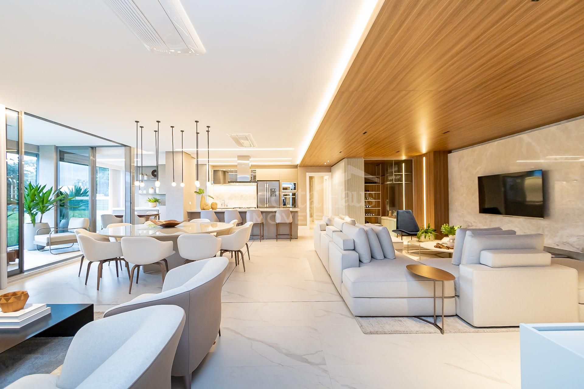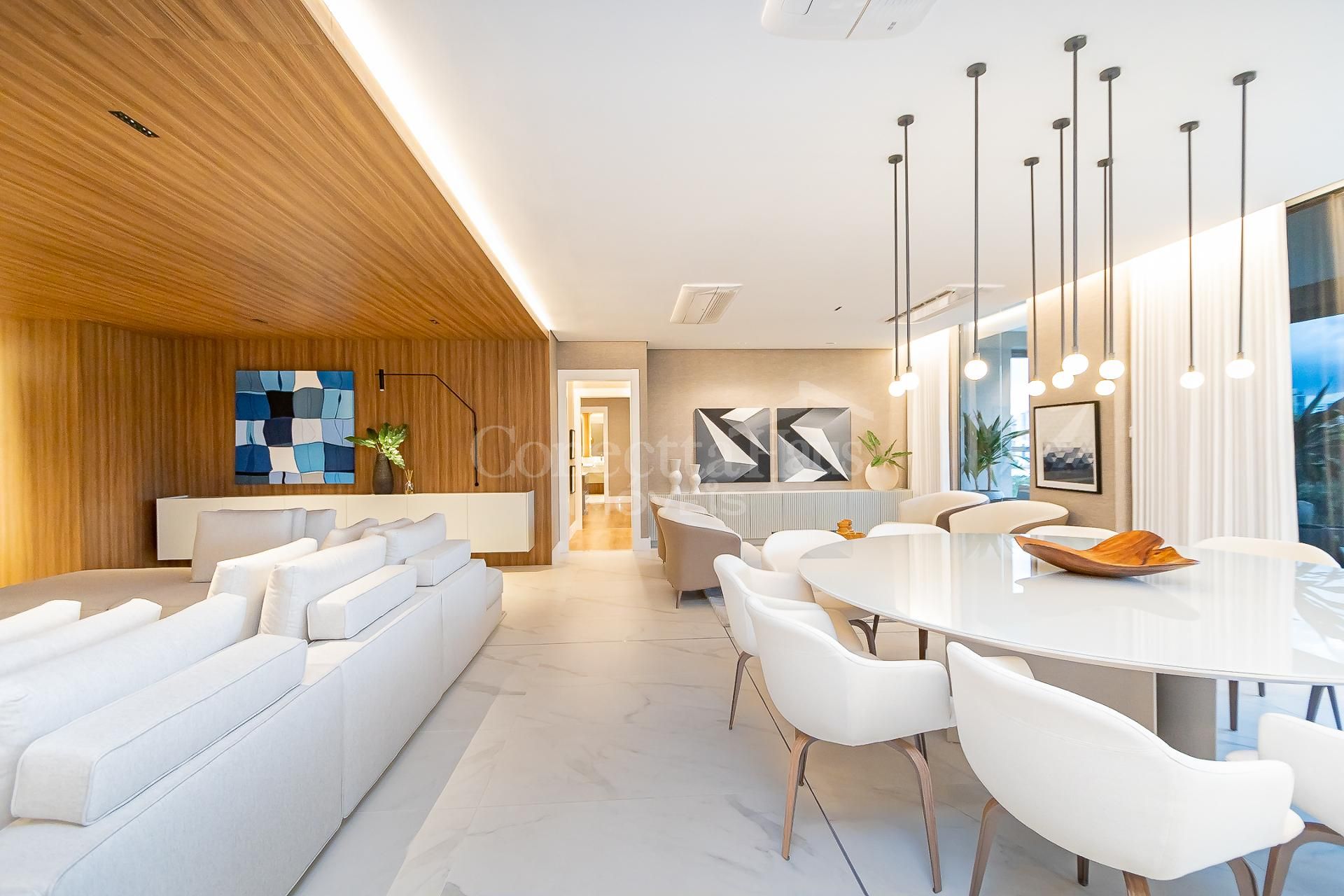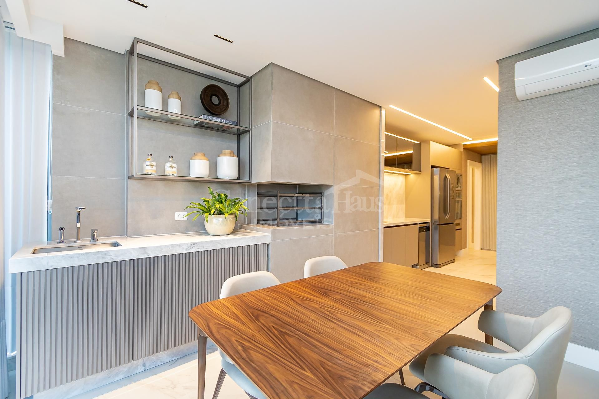 * Ambiente integrado entre cozinha, sala de jantar e sala de estar,