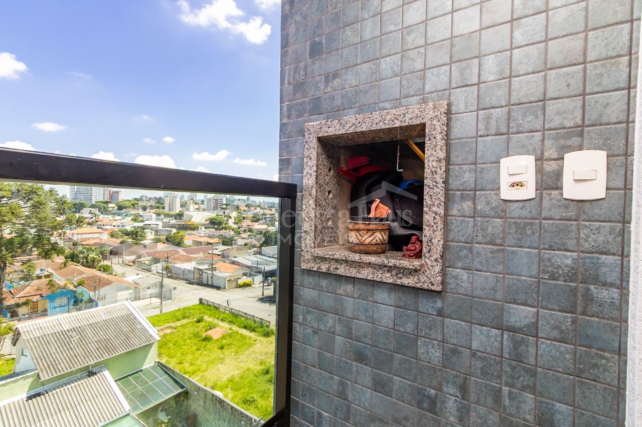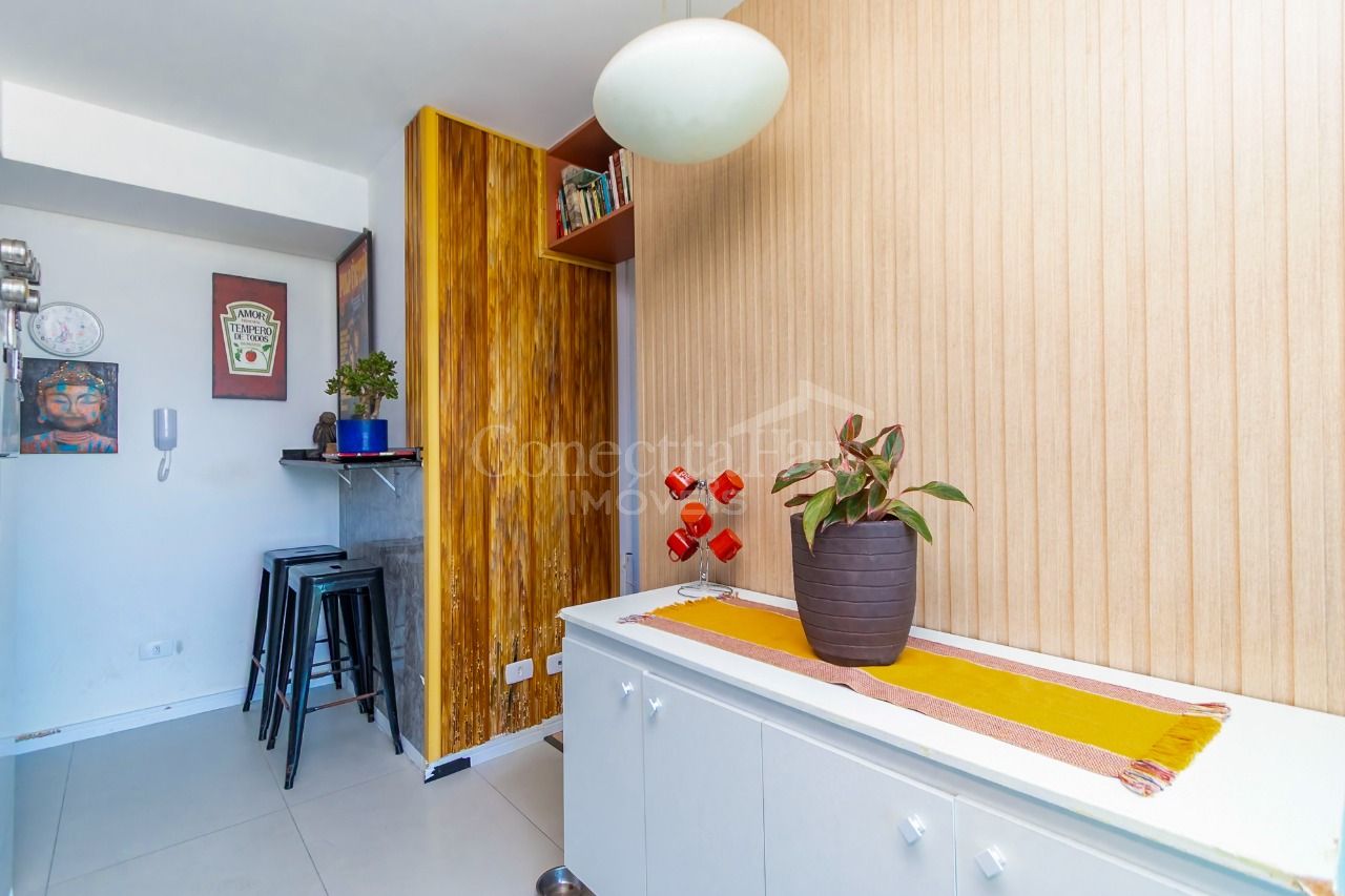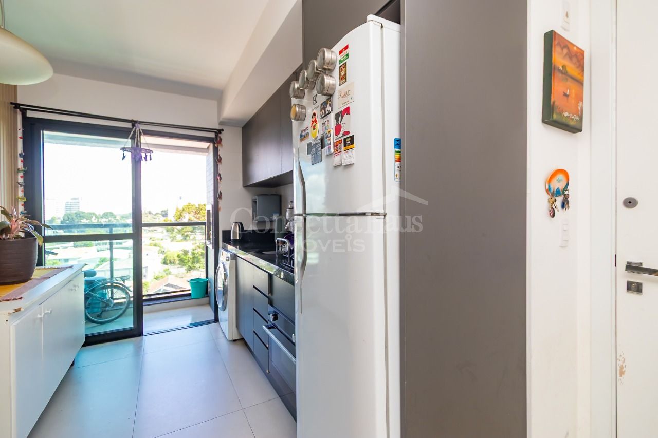 Studio no 5º andar, com vista livre, no bairro Novo Mundo. O espaço é otimizado, com sala e cozinha conjugadas e dormitório separado, proporcionando um ambiente funcional e aconchegante.