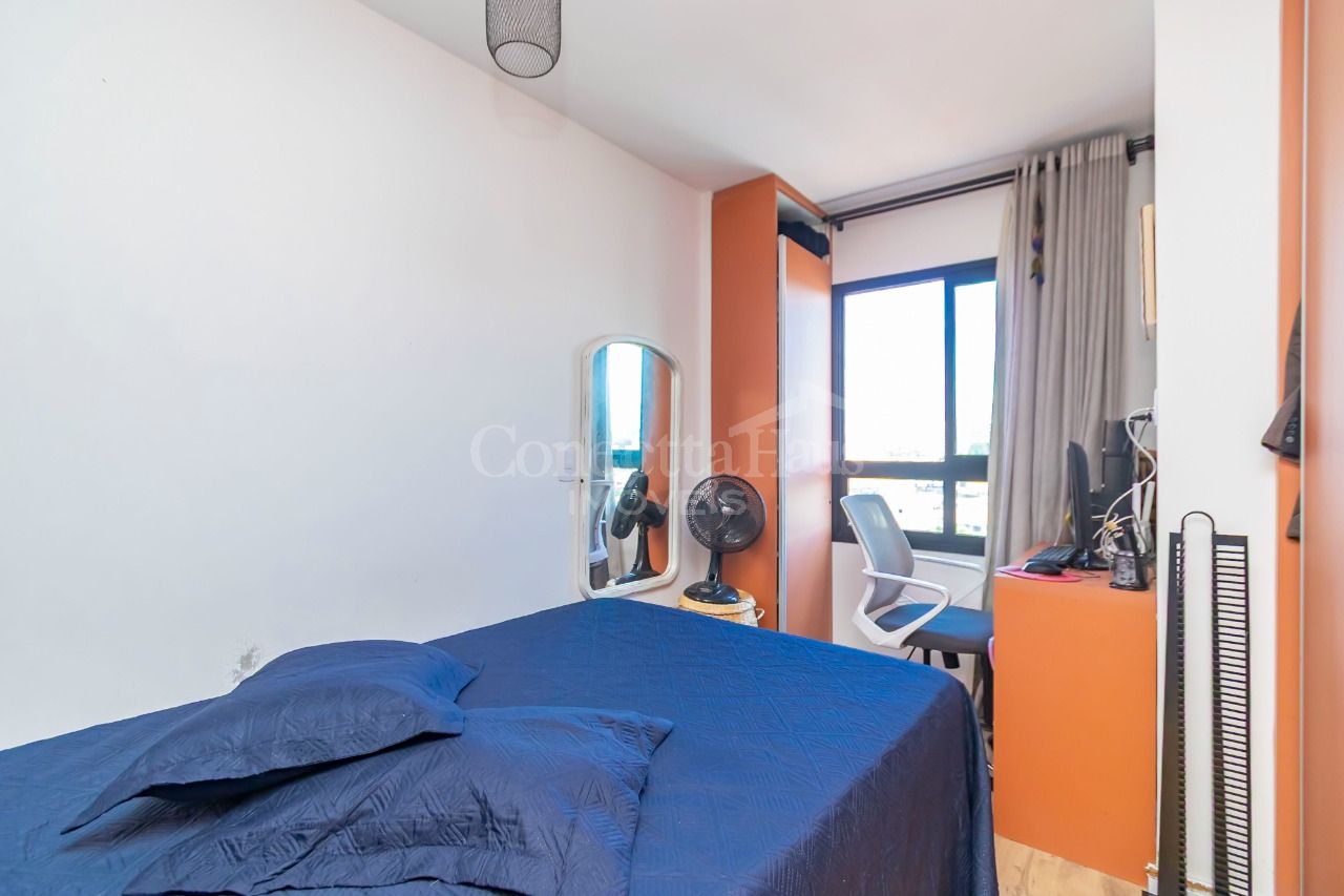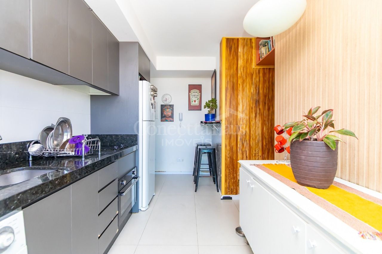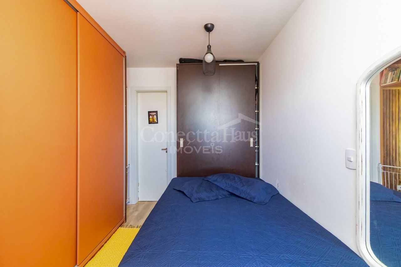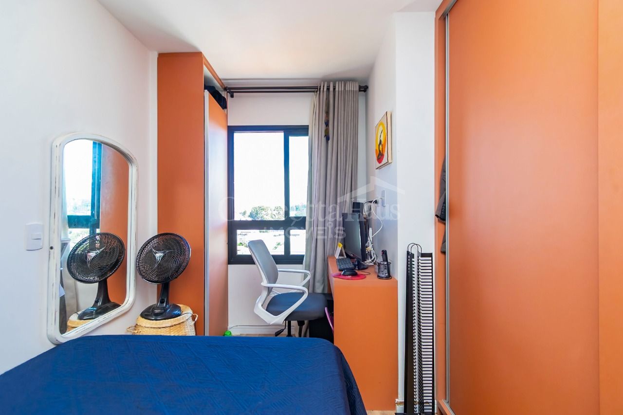 Studio no 5º andar, com vista livre, no bairro Novo Mundo. O espaço é otimizado, com sala e cozinha conjugadas e dormitório separado, proporcionando um ambiente funcional e aconchegante.