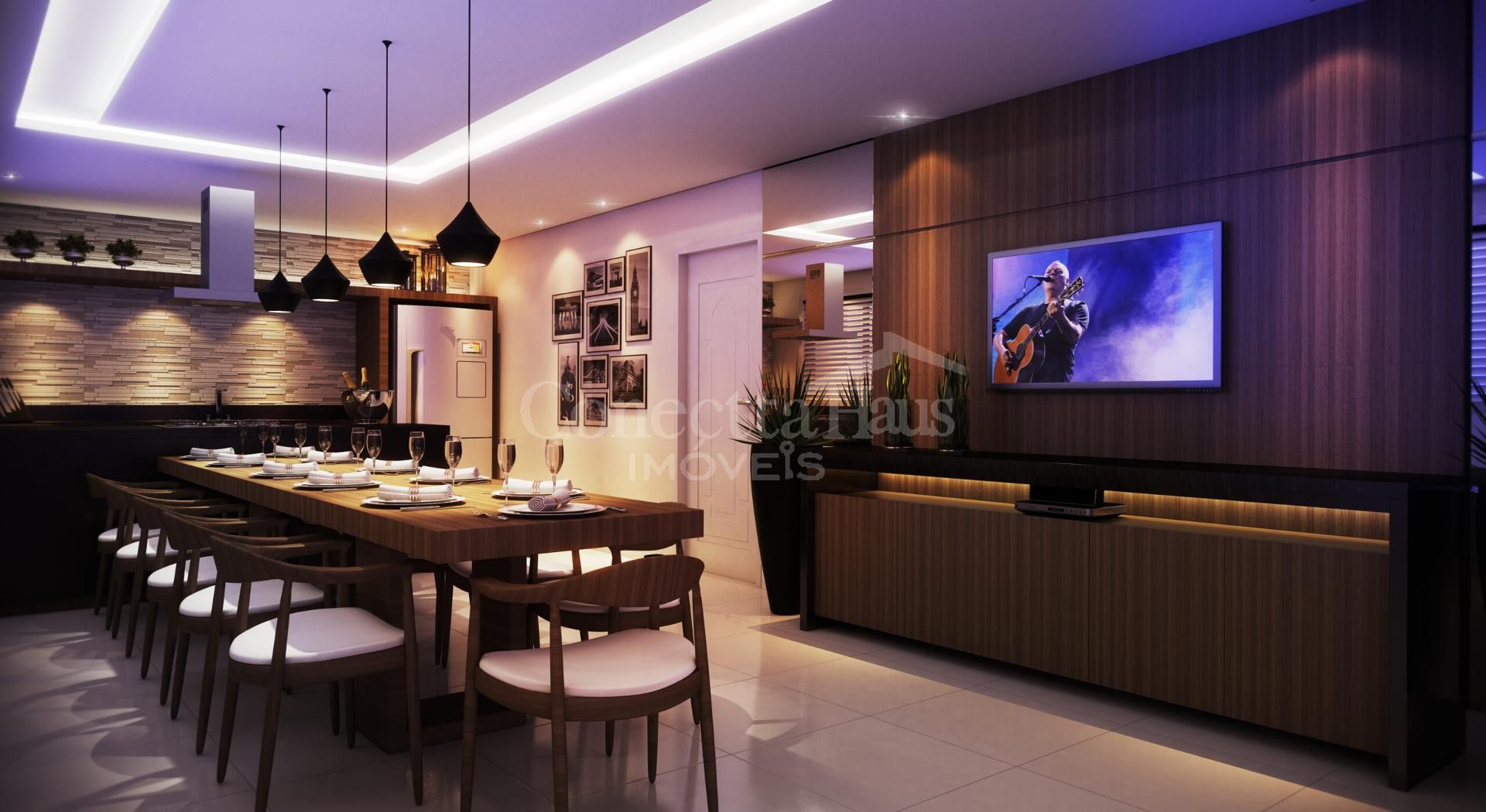 Sala integrada com cozinha, oferecendo amplitude e praticidade no dia a dia
