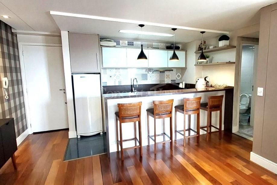 Ficarão todos os armários planejados, cama casal, sofá, abajur, cortinas, balcão, cadeiras alta, geladeira, maquina lavar roupa, fogão Cooktop, exaustor, forno, luminárias, mesa com 2 cadeiras, quadros. Tudo em estado de conservação impecável.