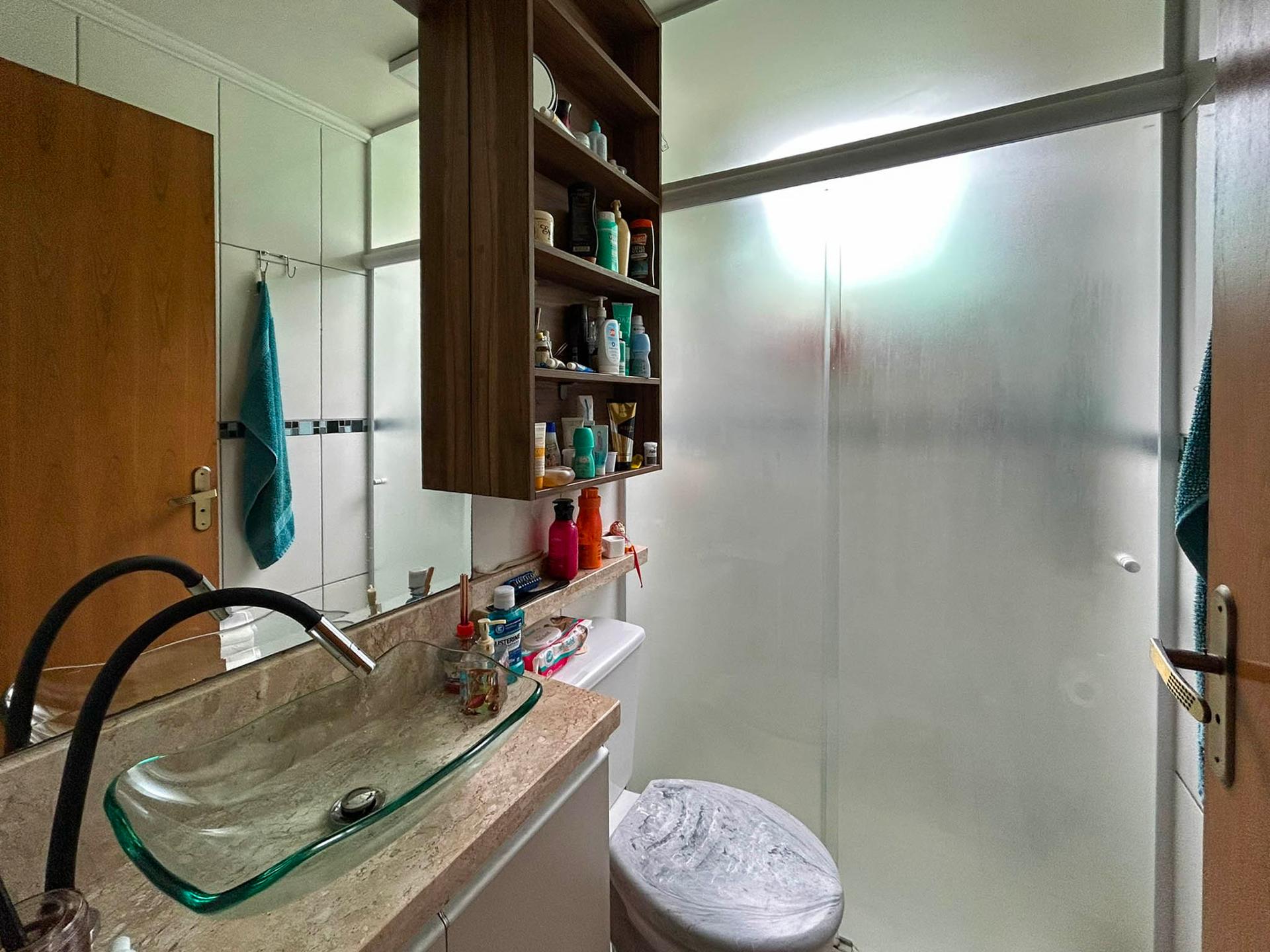 Banheiro com box em vidro até o teto