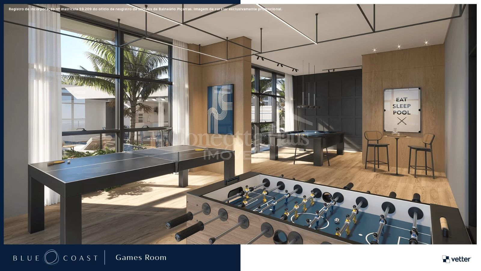 Desenvolvido em cada detalhe, o empreendimento conta com: Sistema de Som Ambiente e Wi-Fi nas Áreas Comuns Vagas de Estacionamento para Carros e Elétricos Piscina com Deck Molhado e Vista para o MarBeach Sports & BochaRedário, Pizza Bar e Brinquedoteca Cinema com Bombonière e Games CenterVetter Grill & BeerFitness Center Reebok com Deck Externo Lazer para Todos os gostos