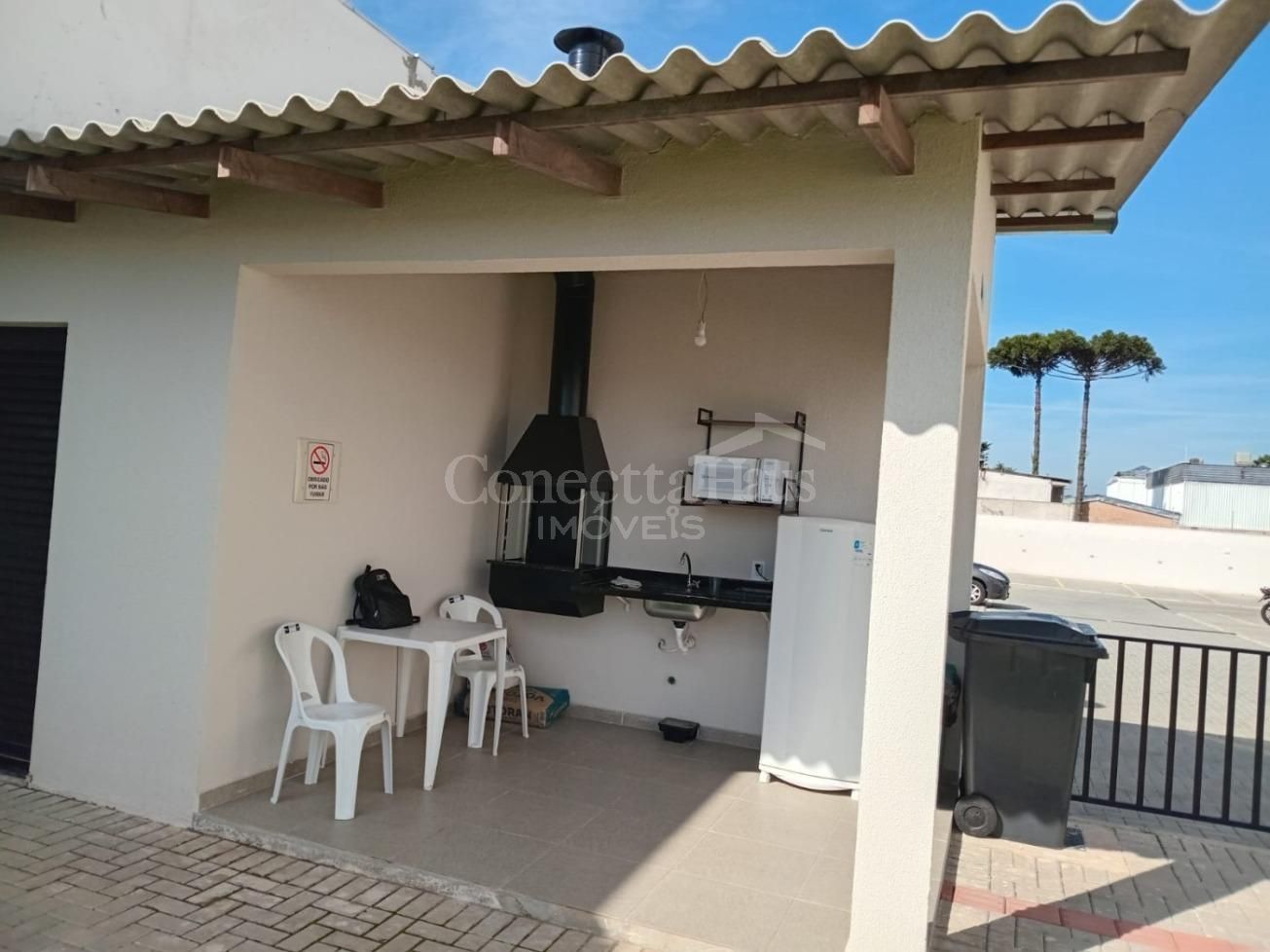 Sacada com churrasqueira e armário