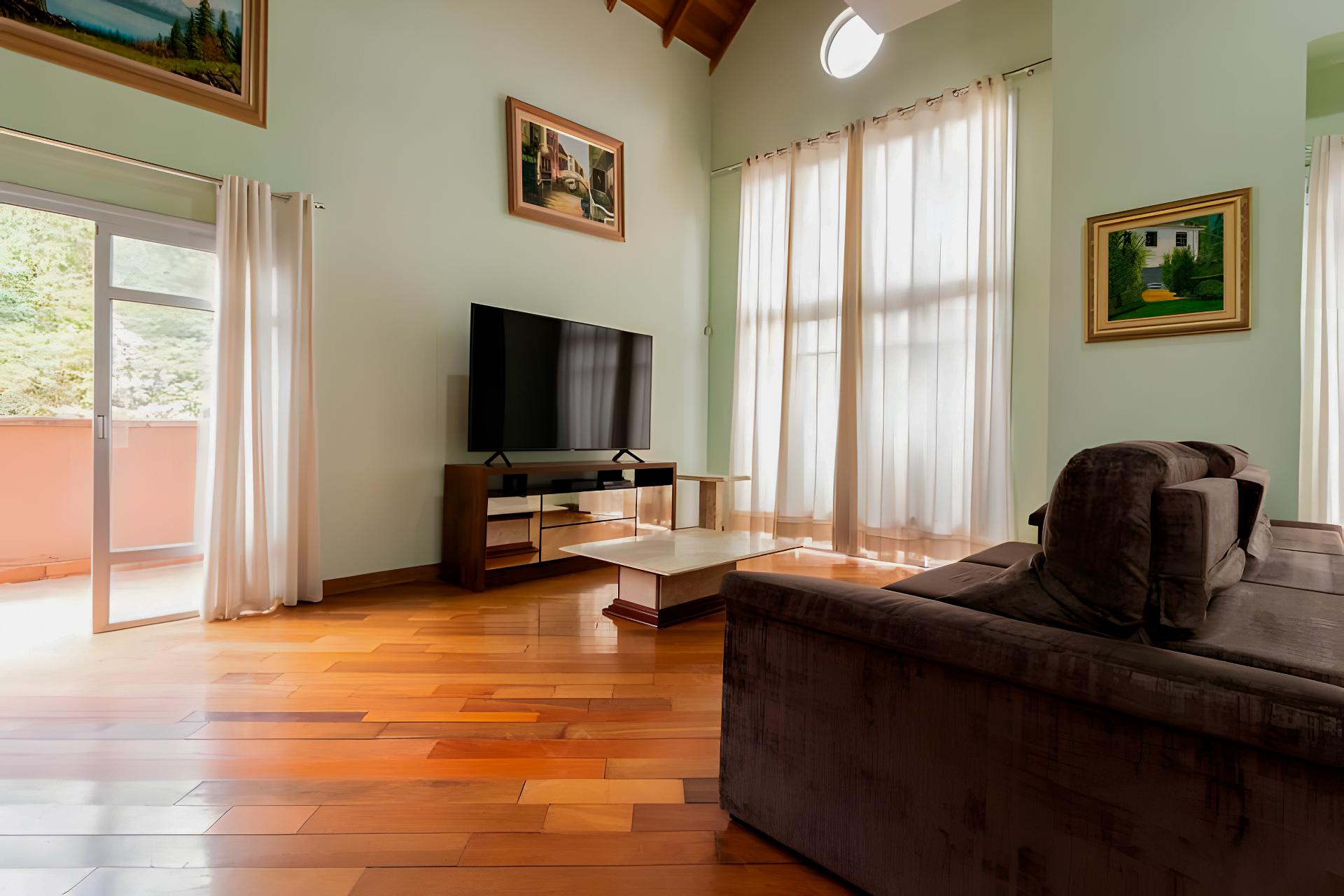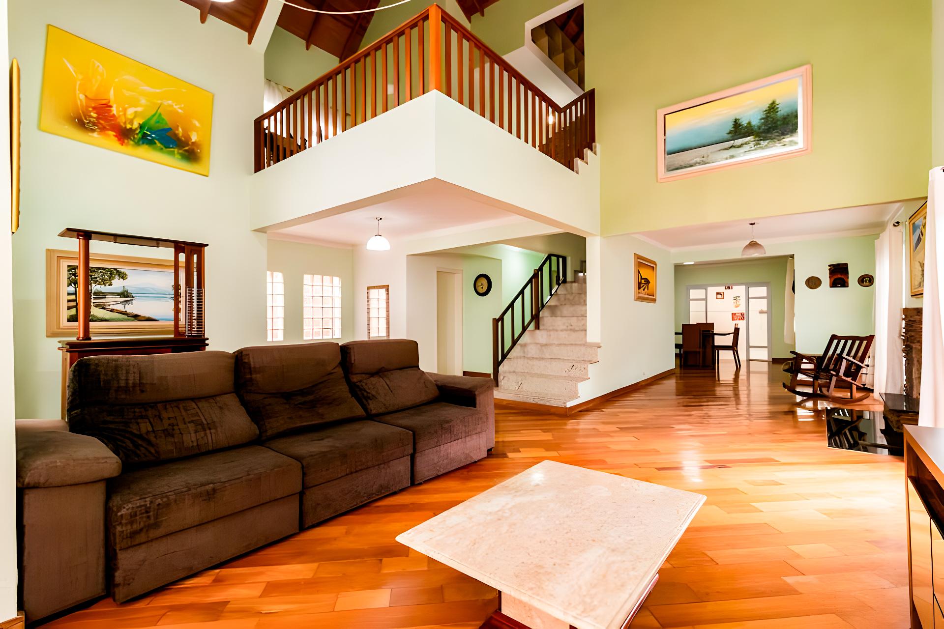 Ampla sala de estar com pé-direito duplo