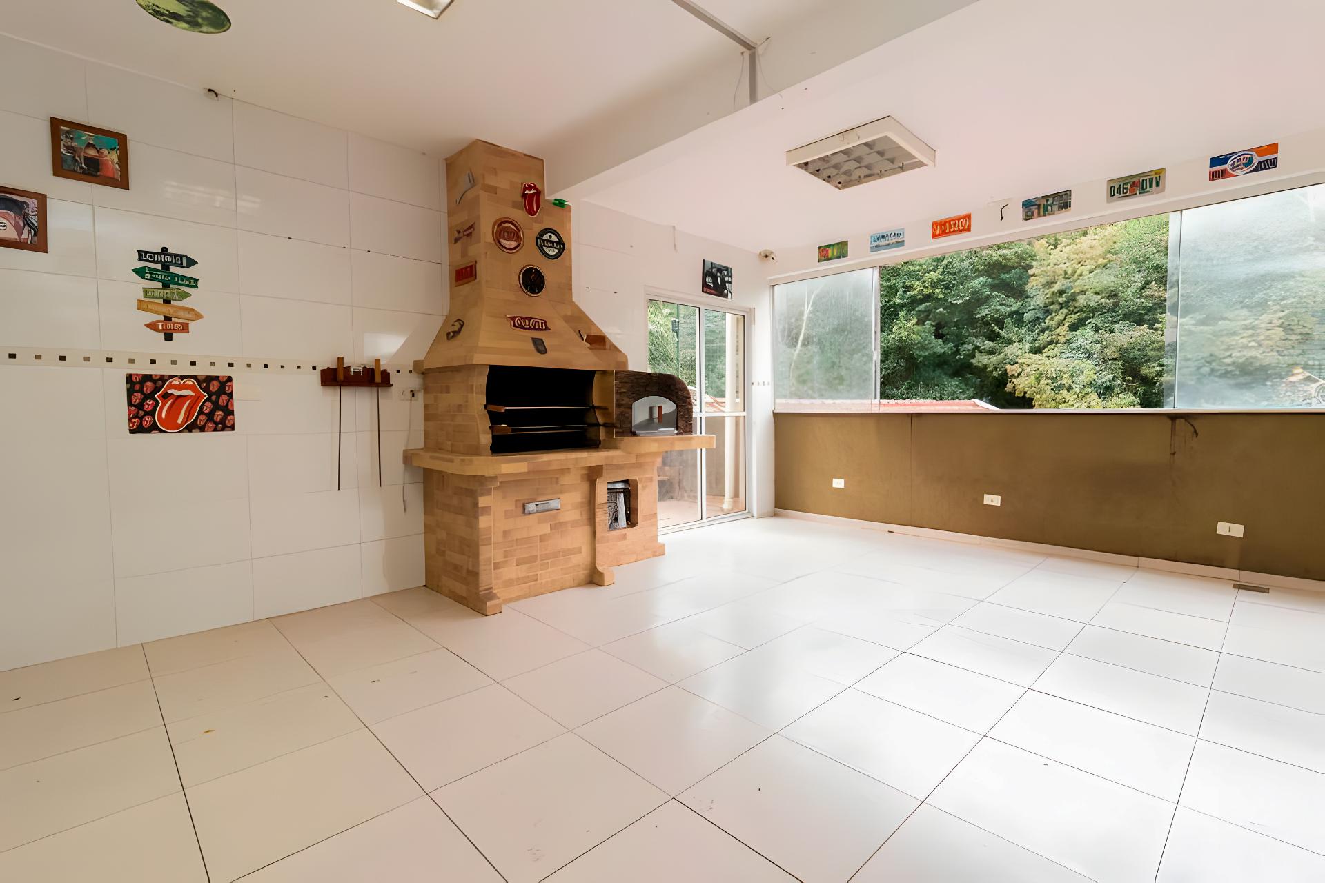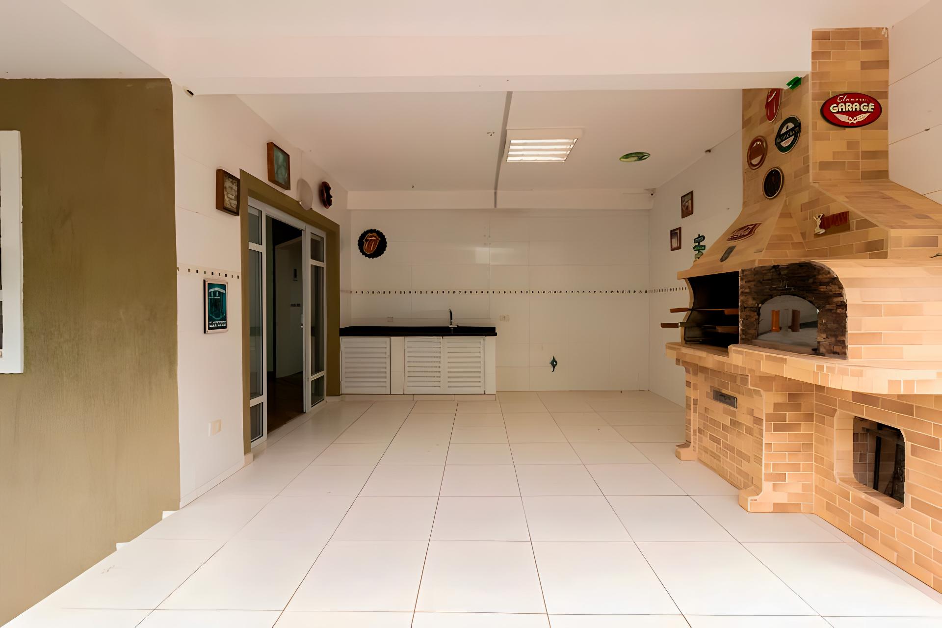 Área gourmet equipada com churrasqueira e forno de pizza, integrada ao quintal perfeita para confraternizações e momentos de lazer ao ar livre