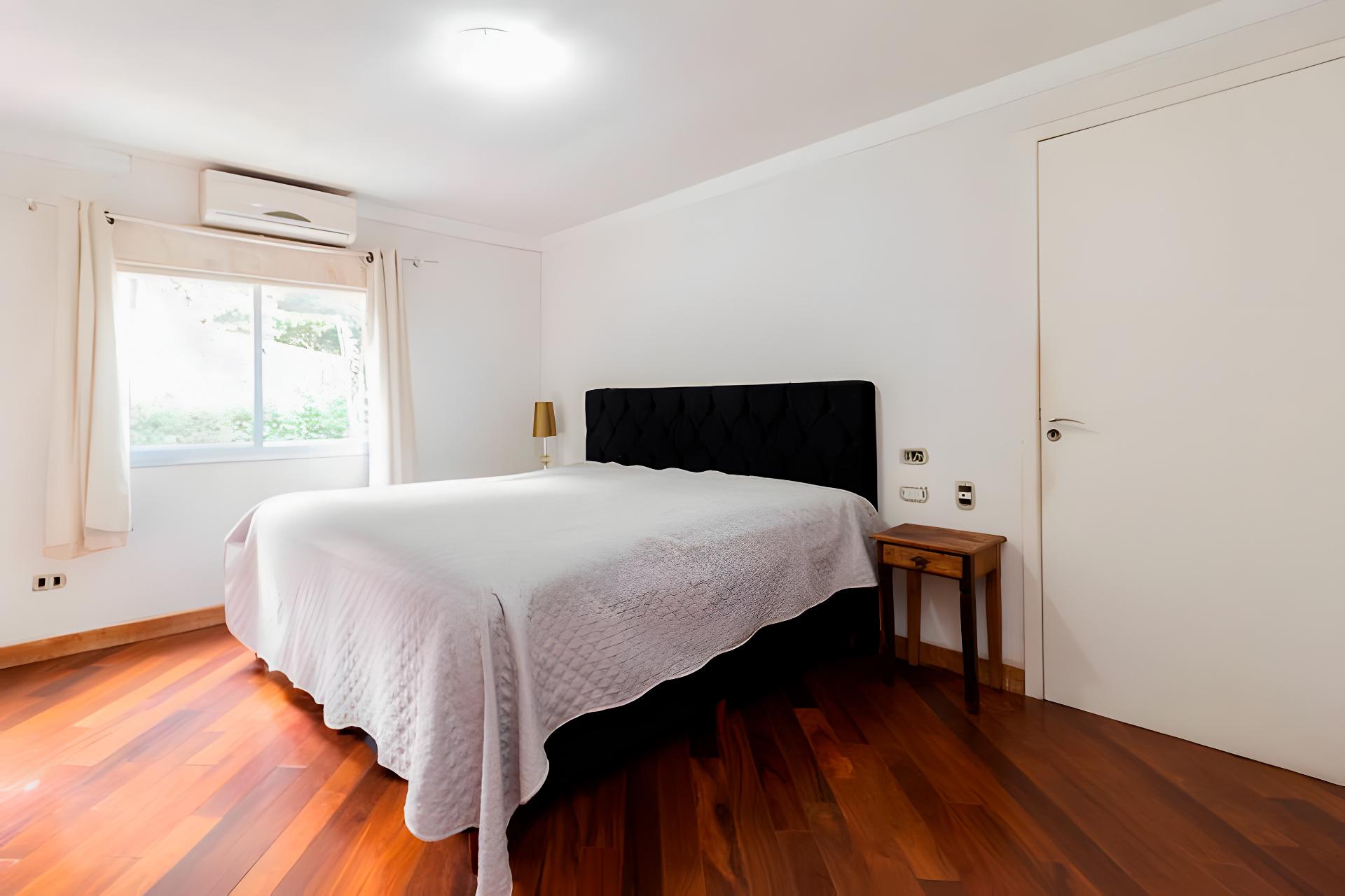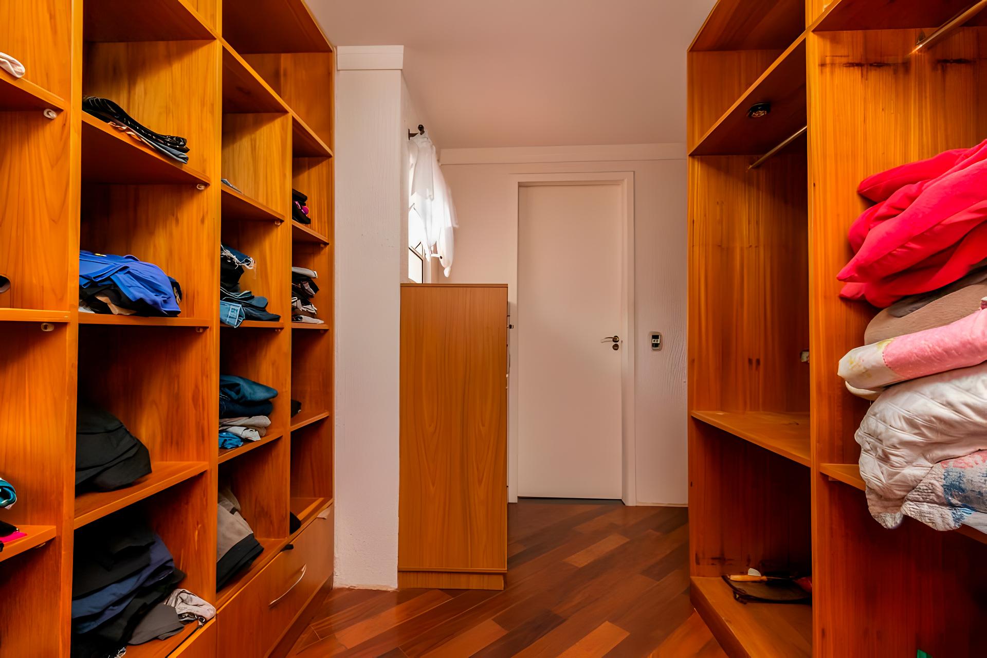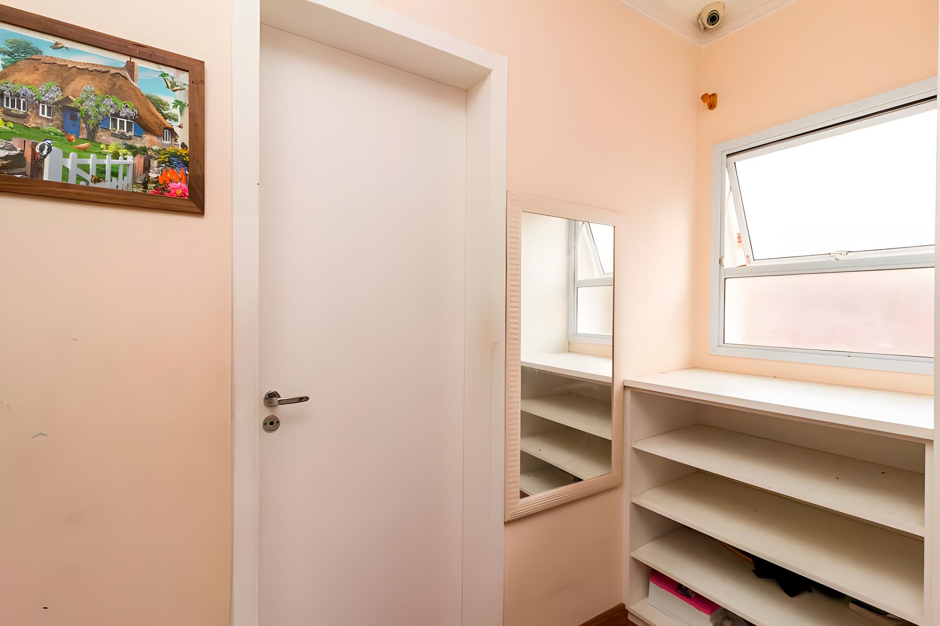 Terceira suíte, atualmente utilizada como escritório, com armários sob medida e excelente iluminação natural