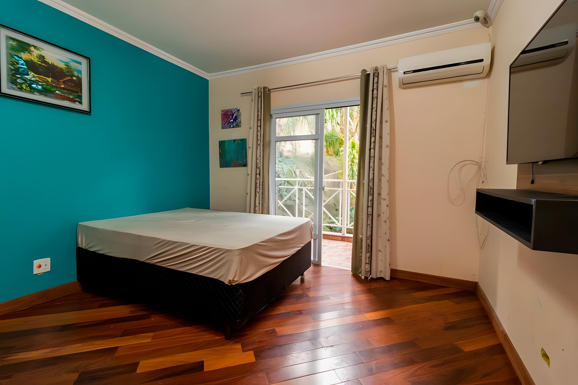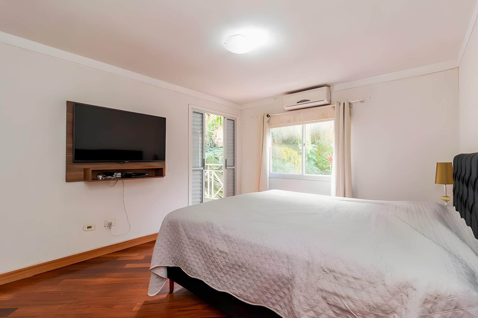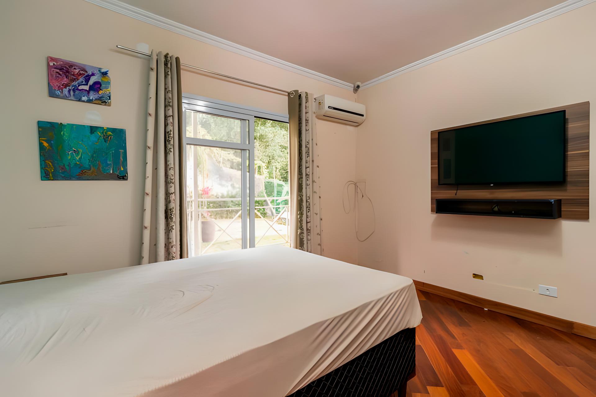 Terceira suíte, atualmente utilizada como escritório, com armários sob medida e excelente iluminação natural