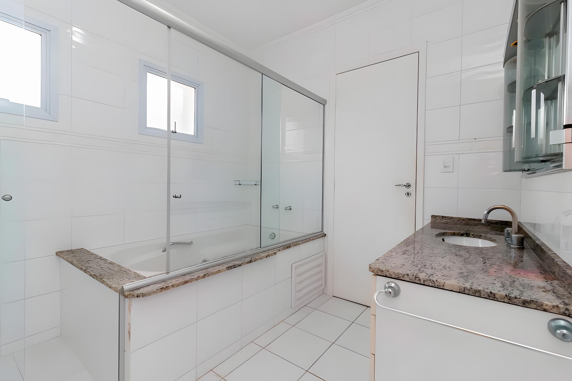 3 suítes amplas, sendo duas com closet, banheira de hidromassagem e varanda integrada