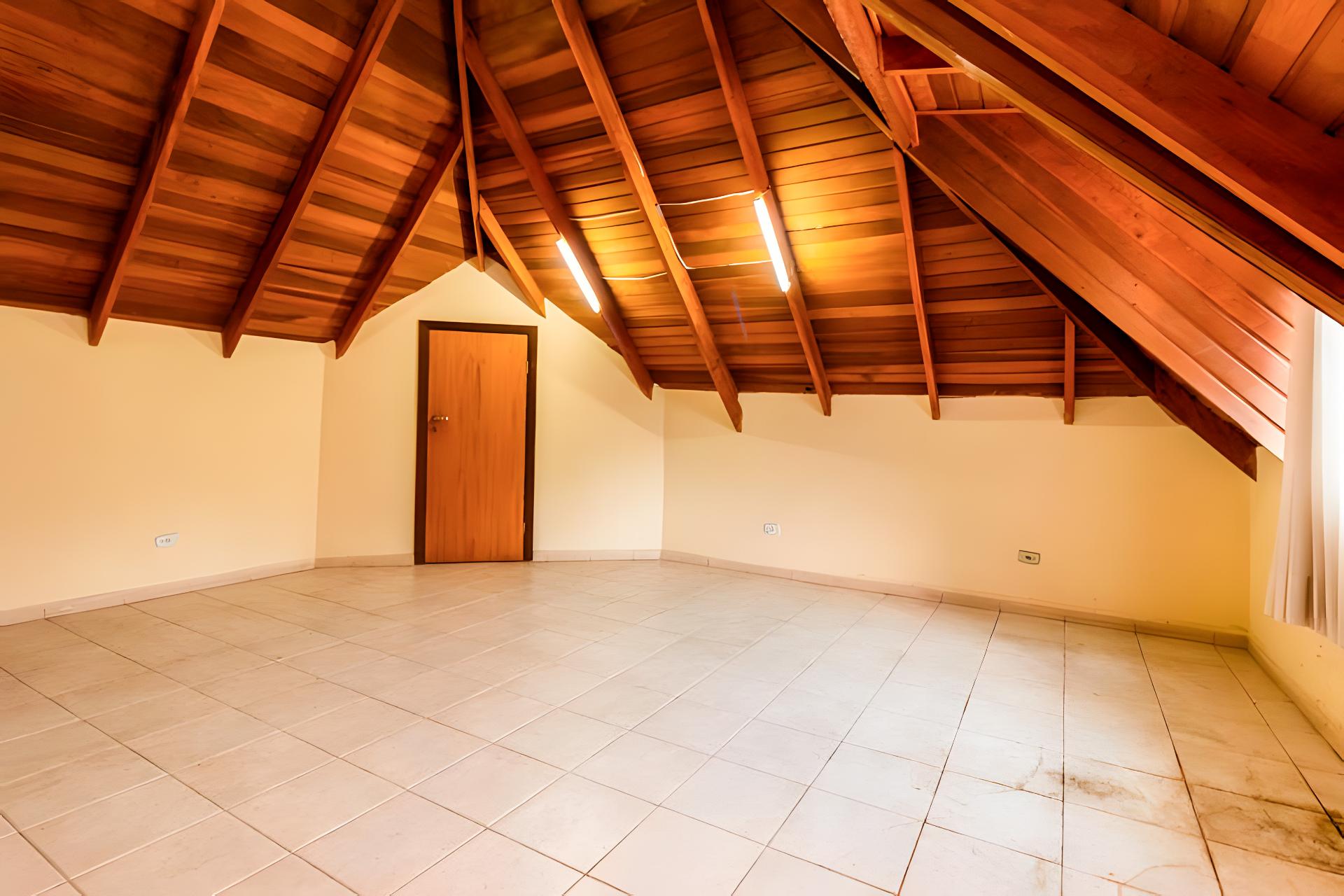 Amplo ático com múltiplas possibilidades de uso: sala de lazer, escritório ou dormitório adicional