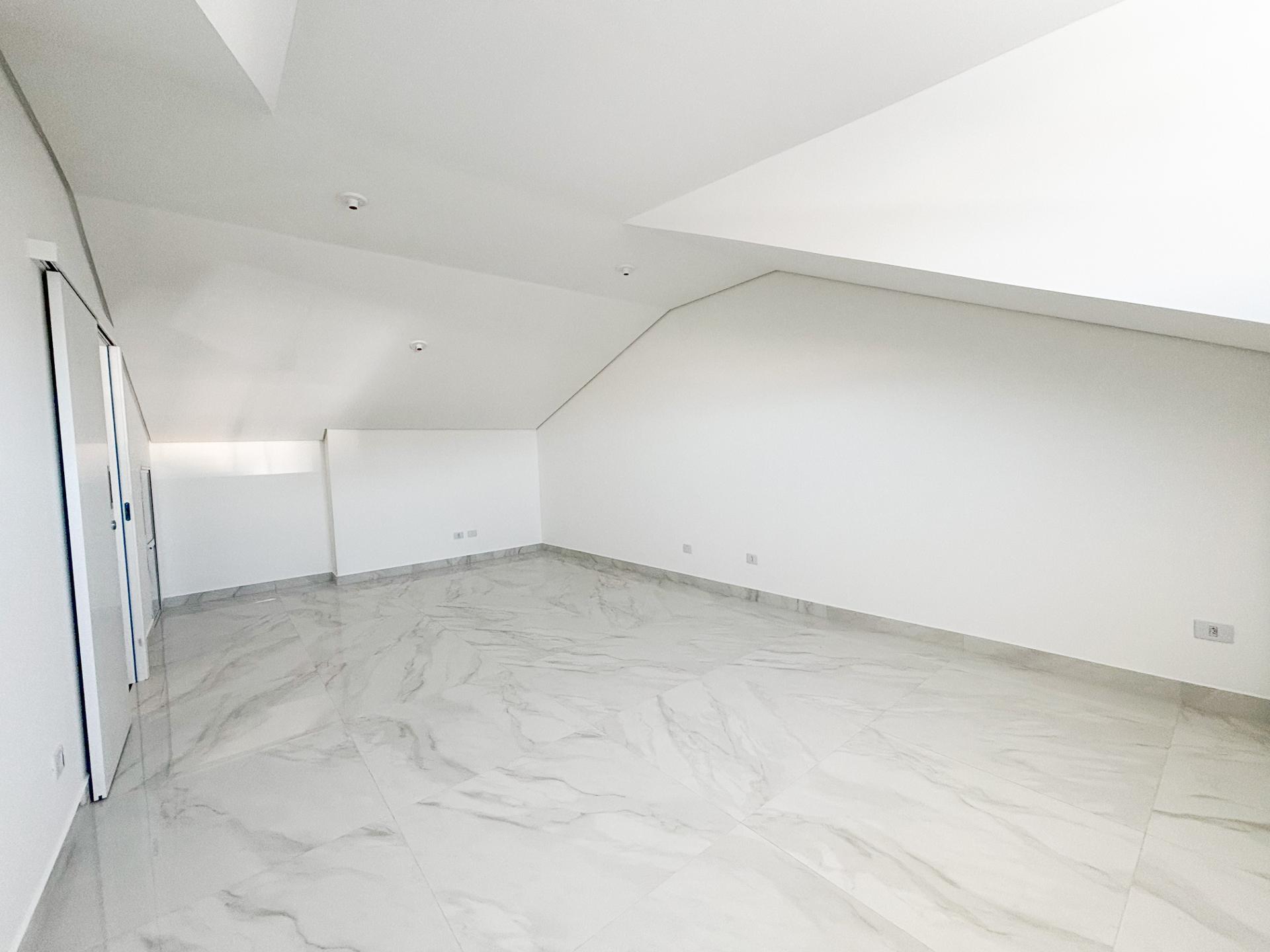 O imóvel dispõe de 2 quartos + amplo ático (ideal para suíte ou espaço de lazer), lindo gramado lateral que valoriza a entrada da cozinha, salão de acabamento de alto padrão. Banheiro impecável em porcelanato e escada imponente completam o conjunto.